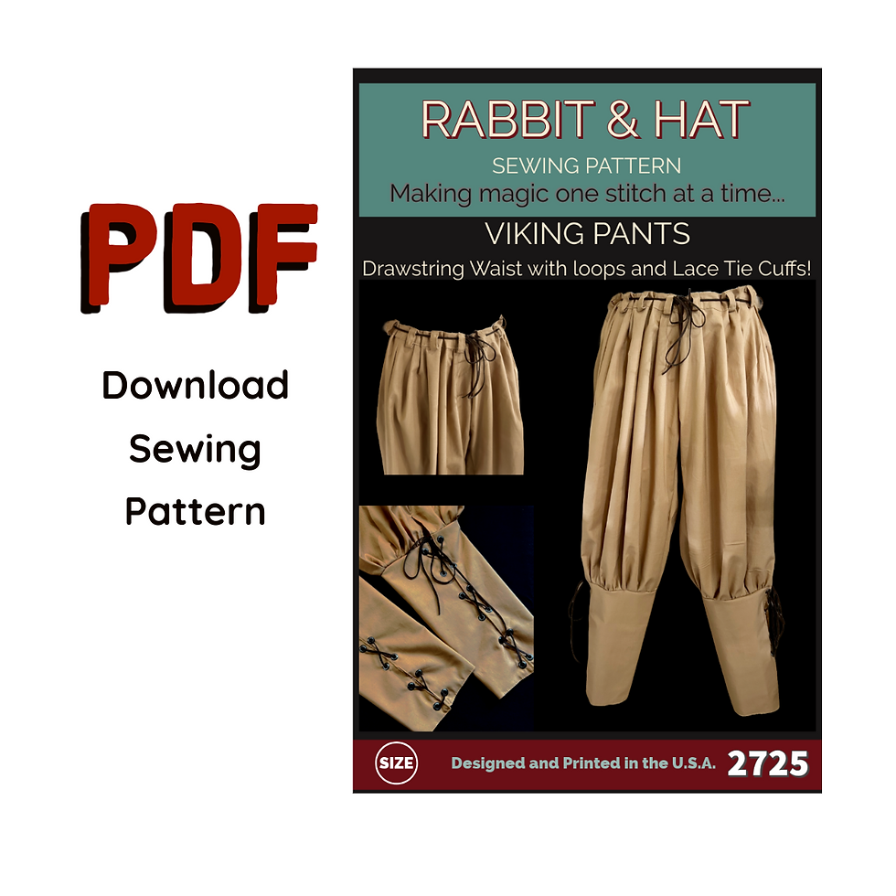 2725 PDF - Viking Pants Drawstring Waist and Tie Cuffs- All Sizes Included